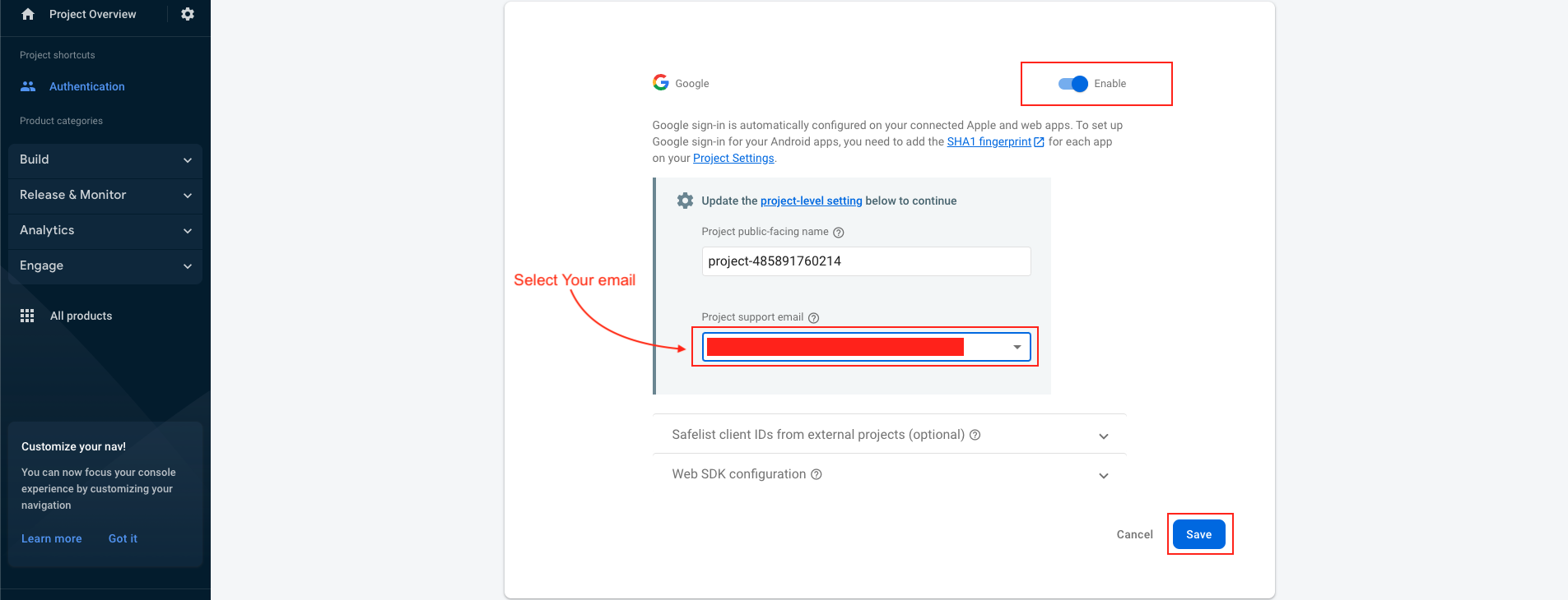 Step 1 : Enter SHA Key in firebase console