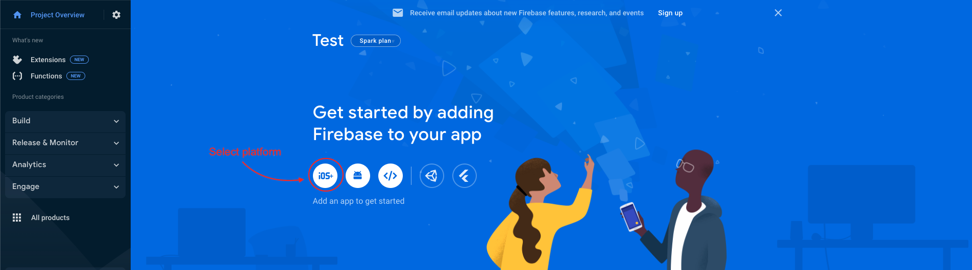 - we have to choose the platform to add Firebase to our application. Click on iOS.