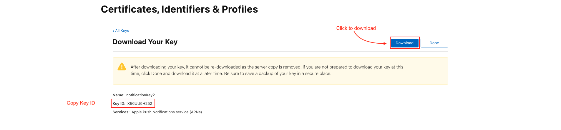 Create APNs Auth Key For Push Notification