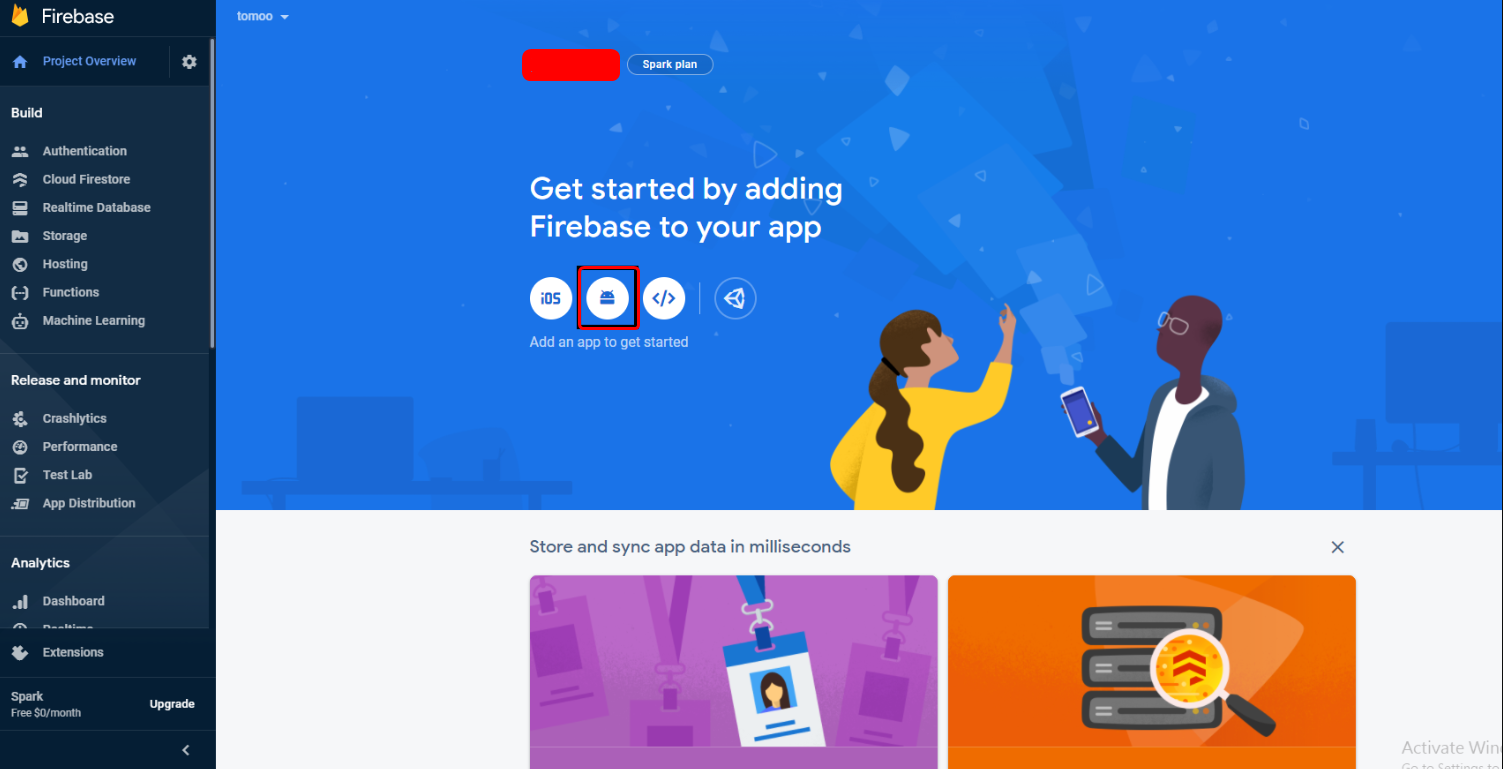 - Please navigate to your Firebase project, which you may have created while following the backend documentation. If you haven't created one yet, please follow the steps below to set up a project: