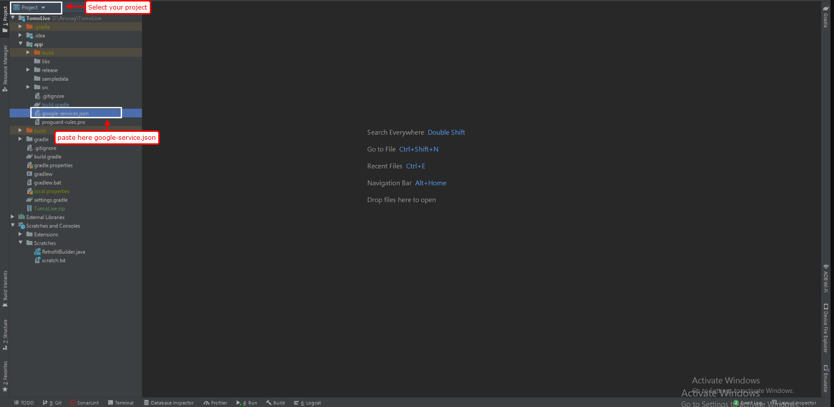 - Download the google-services.json file & place it in your project's app root directory.