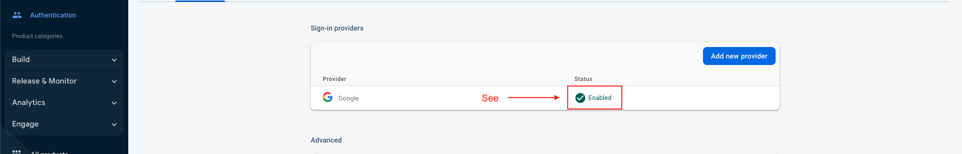 - Google sign-in method has been successfully enabled.