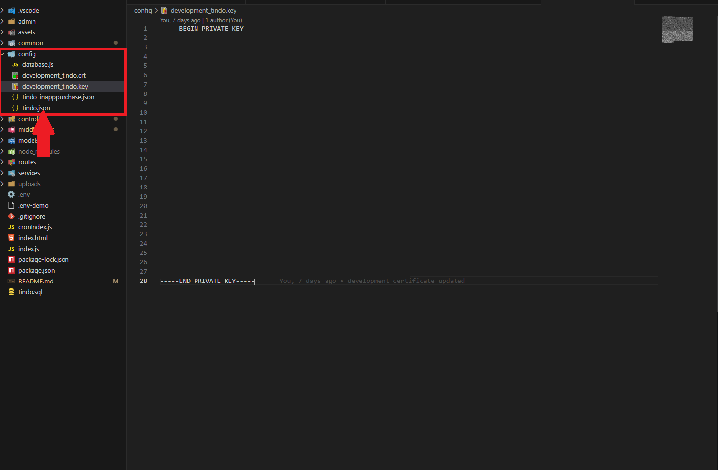 - Please update the downloaded private key file in the 'config' folder of the code and rename it to tindo.json.